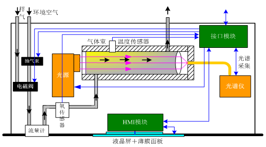 由于各種氣體分子在不同波段對(duì)光波有不同的吸收,通過(guò)對(duì)氣體吸收后的連續(xù)光譜的分析,實(shí)現(xiàn)了多種氣體的同時(shí)測(cè)量。